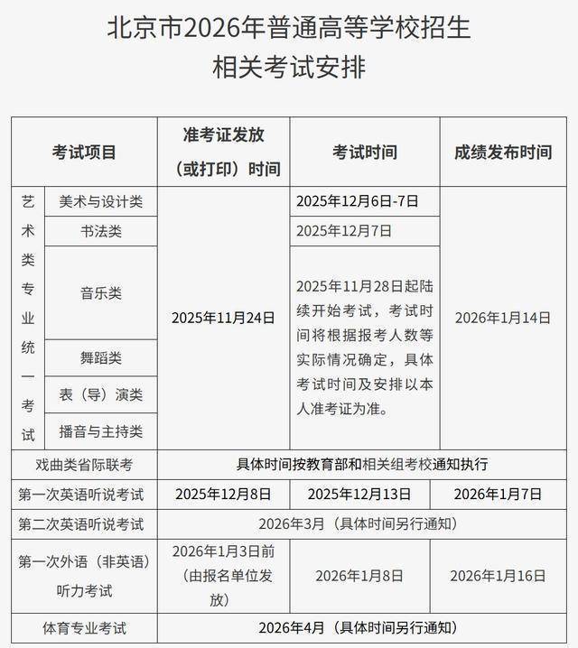 据北京考试报消息,10月17日,北京教育考试院发布的《关于做好北京市2026年普通高等学校招生报名工作的通知》明确,北京市2026年普通高等学校招生报名工作将于2025年10月25日开始。